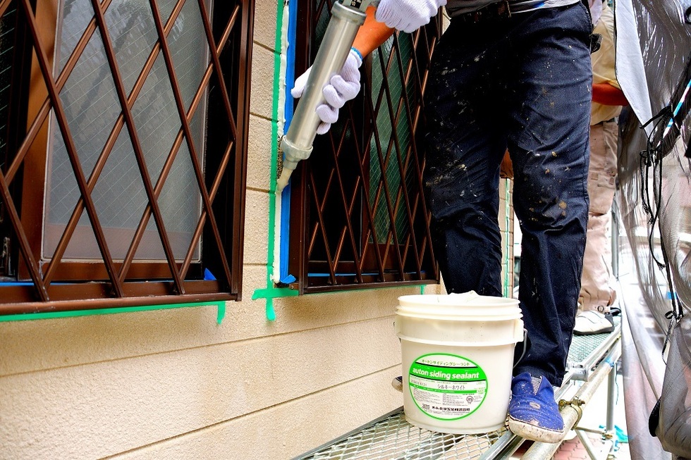 サイディングボード間の目地や開口部の窓周りのシーリングは特に劣化が酷く全て撤去の上打ち替え工法で仕上げています。