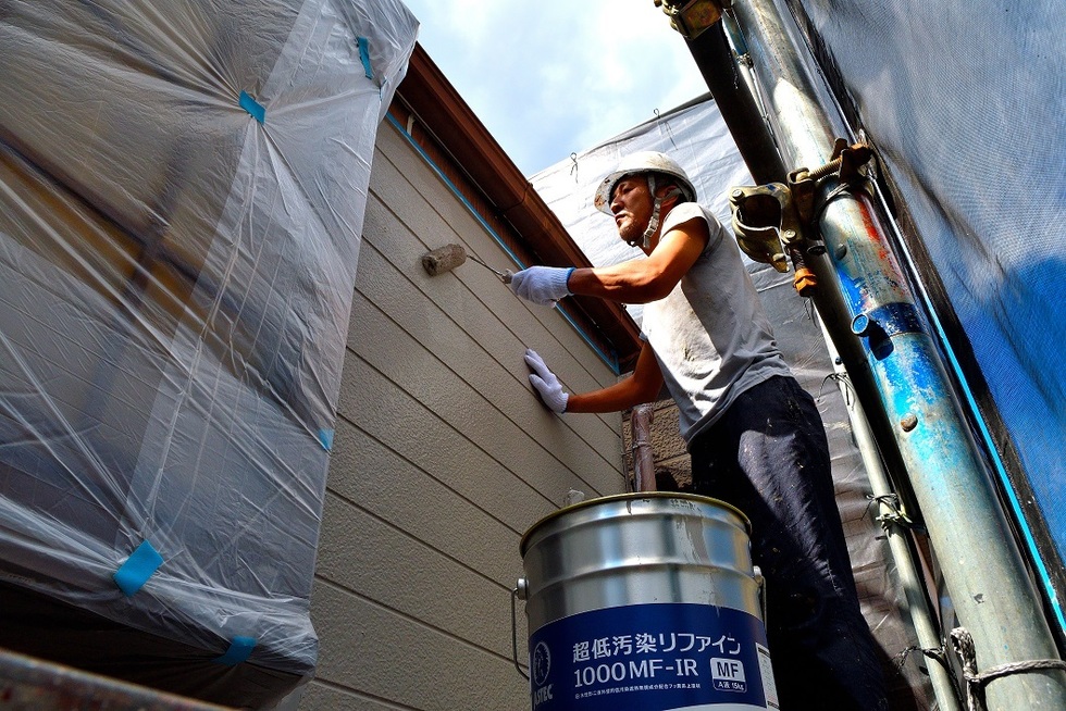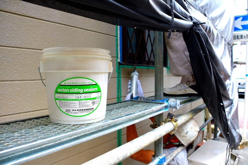 オートンサイディングシーラントは1成分型なので、施工後に乾燥期間を7日間開けてから次の工程に移っています。