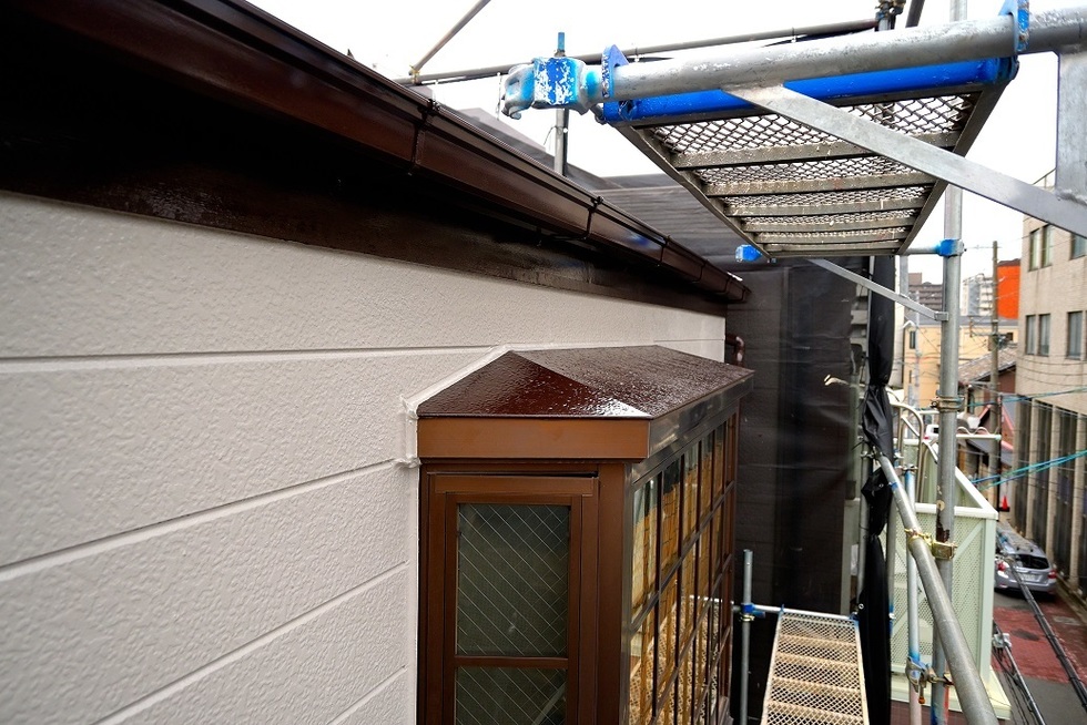 その他の入隅や貫通部、軒天上の取り合いなどは全て増し打ち工法で仕上げています。